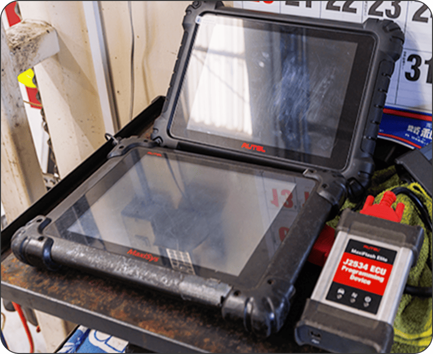 電子制御・運転支援システムを正しく扱い、故障コード診断から再調整まで一貫管理。