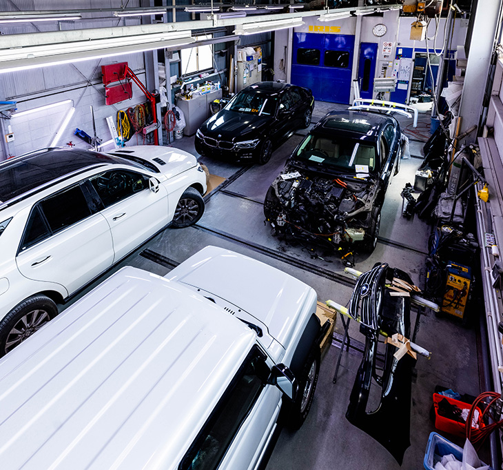 世田谷=整備(車検・電装・冷却・足回り)/調布=鈑金・塗装(保険修理・ガラス・防錆・塗装)