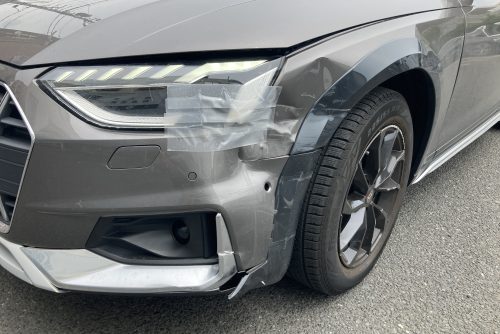 フロントフェンダーからクォーターパネルにかけて損傷したランドローバー・イヴォークを修理しました。