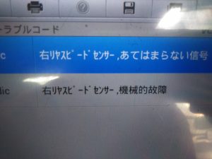 今回は右後ろホイールスピードセンサー不具合のコードを確認。