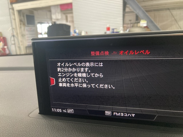 ある程度暖めないとエンジンオイル量が確認出来ません。