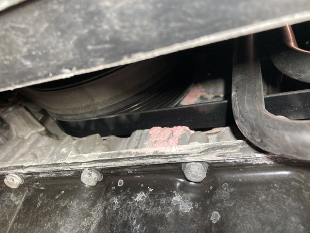 漏れ跡をたどっていくとエンジンのVバンクの中からでした。