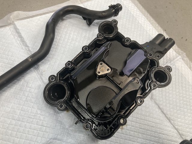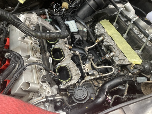 中央部にあるオイルセパレーターという部品から漏れていました。