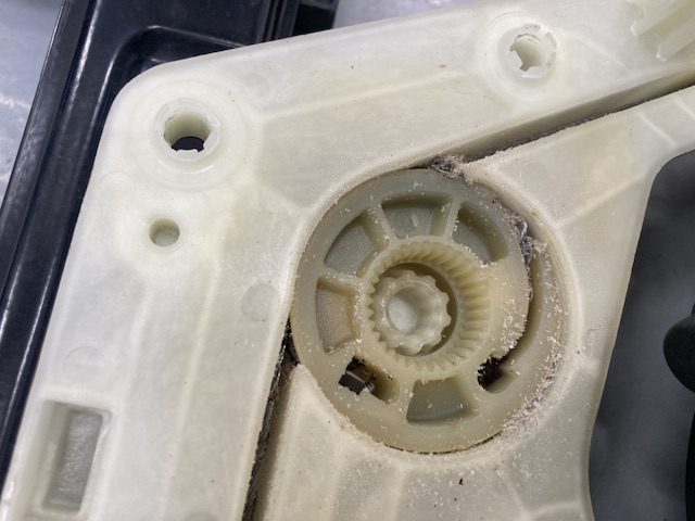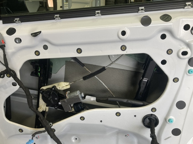 パワーウィンドウレギュレーターという部品の不具合で間違いないのでドアを分解していきます。