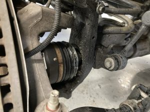 フロントドライブシャフトのブーツが切れていてグリスが飛び散っていますね