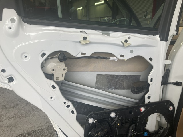ドアの内張と内部のパネルを取り外し配線をずらしてアクセスします。