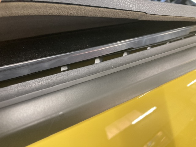 トリムを車両から取り外して、剥がれた箇所に強力な接着剤を塗布して貼り付けていきます。