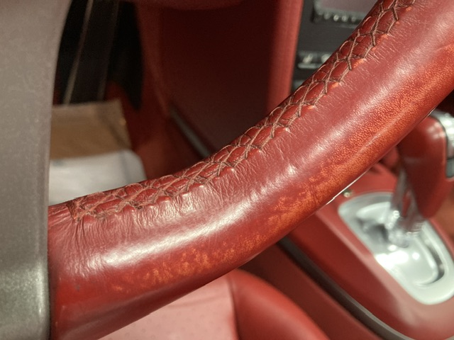 レザーの味が出ている個所もありますが、オーナー様は気になってしょうがないようです。
