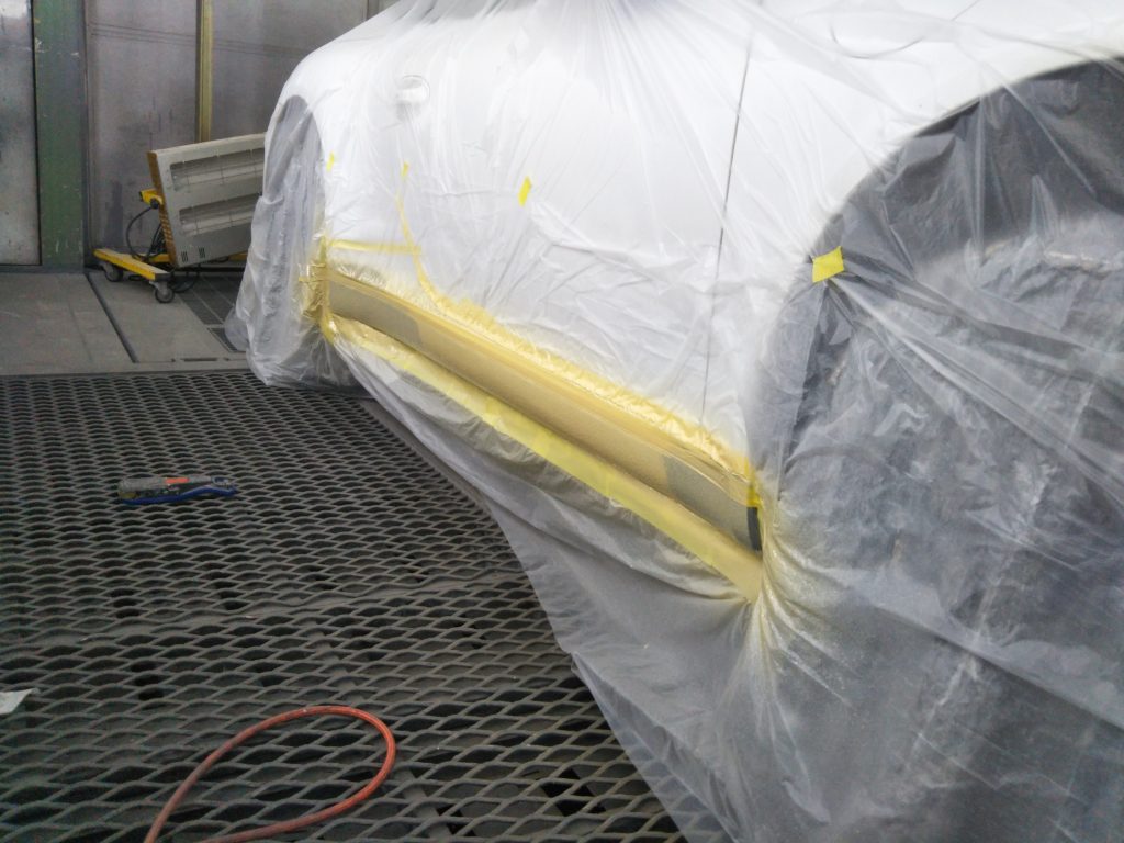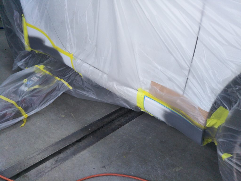その中でロッカーパネルからの引き続きパネルとなるクォーターパネルは全体を塗装します。