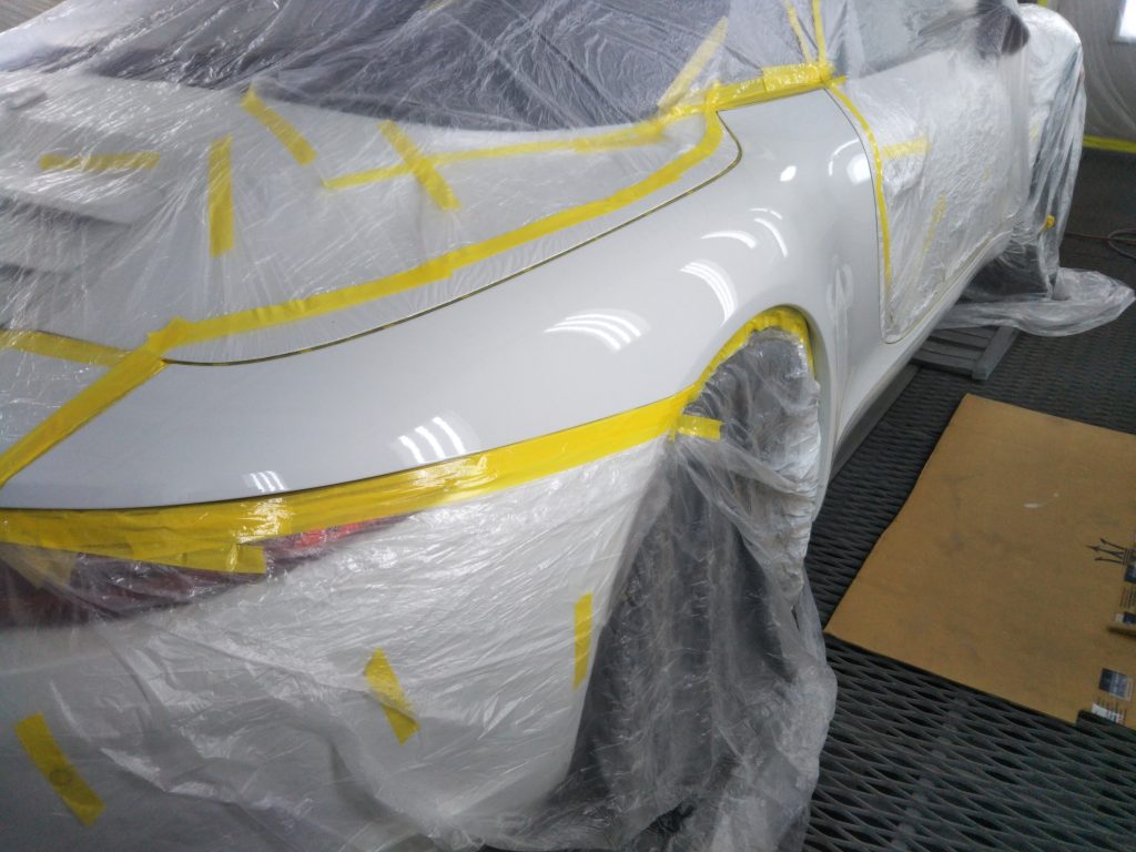 クォーターパネル、キズ、凹み、修理、ストーンガードテープ、剥がし、ドアミラーカバー、キズ、修理、ポルシェ、911、カレラS、ロッカーパネル、キズ、凹み、修理、