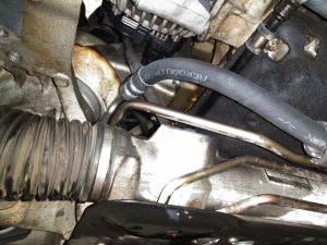 パワーステアリングポンプと高圧側ホースを交換していきます。