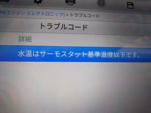 チェックエンジン点灯の原因は電子制御サーモスタットの不具合。