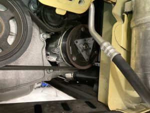 コンプレッサーを取り外すのにバンパーを外すか悩みましたが