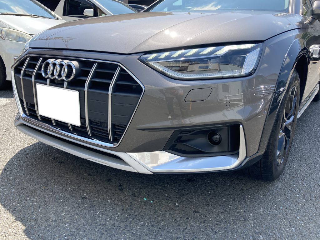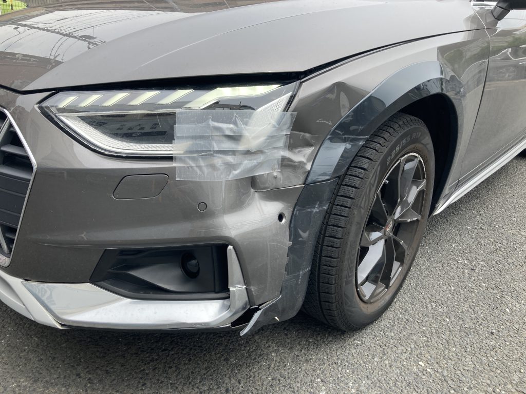 アーチモール、変形、交換、アウディ、A4オールロード、B9、フロントバンパー、キズ、変形、交換、フロントフェンダー、キズ、変形、交換、ヘッドライト、割れ、交換、