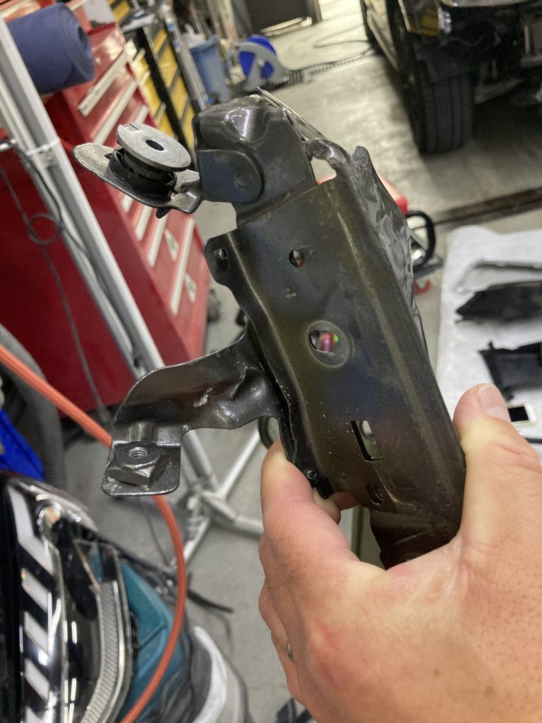 ステーの曲がり具合を写した写真ですが、曲がった様子が確認できますが全て交換する部品を外すことで初めて確認できる場所にあります。