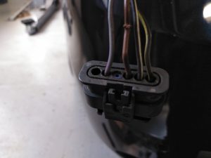 問題の左外側のテールランプを外し、点検を行うと配線カプラーのアース線(-側)が