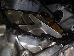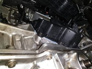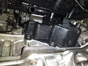 漏れ箇所はエンジンブロック前方に位置するブローバイセパレーターケース。