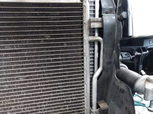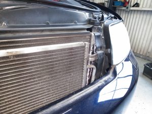 ラジエターの前にはエアコンシステムのコンデンサーがあり、ズラしてラジエターを
