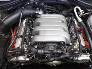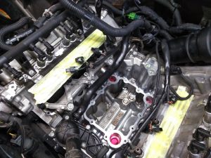 エンジンVバンク中央には未燃焼ガスとオイルを分離する部品(ブローバイセパレーター)があります。