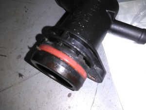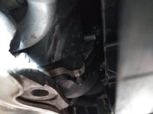 エンジン側との合わせ目のゴムパッキンが熱により劣化。