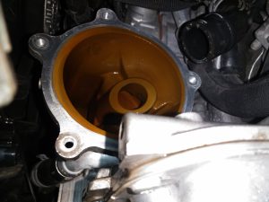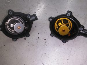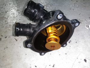 今回のクーラント漏れは電制サーモスタット部からの漏れでした。