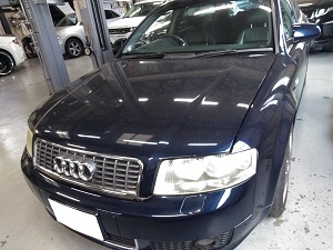 フロントバンパーを中心に複数個所を損傷したアウディ、S3の修理をしました。