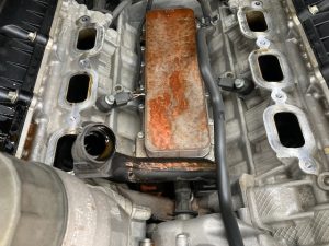 でスーパーチャージャーを外したらバンク内はクーラントが溜まっています