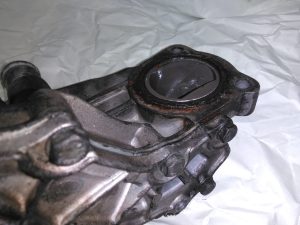 エンジンブロックとの合わせ目からのクーラント漏れ。