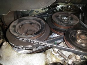 オルタネーター、A/Cコンプレッサー、P/Sポンプ全て取り外して交換です。