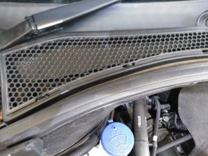 現車両は車外にあります。ワイパーカウル下側に位置しています。