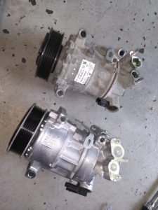 配管と併せてエアコンコンプレッサーを交換していきます。