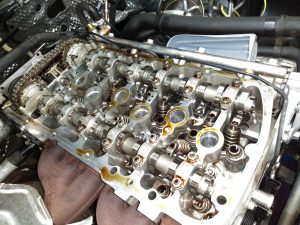 非常に複雑な構造の為色々分解して、やっとシリンダーヘッドカバーが現れました。