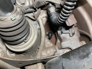 センサーがどこかというとブレーキキャリパーの隙間にあります
