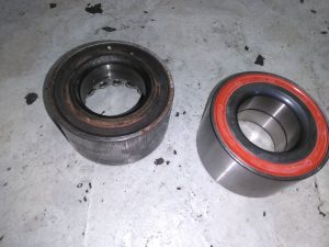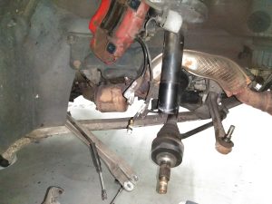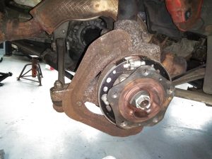 交換にはブレーキ廻りやサスペンション廻りを分解する必要があります。