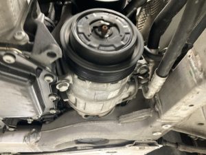 エアコンコンプレッサーはエンジン向かって右下部分にあります