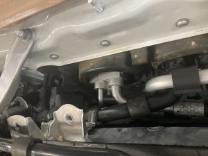 エキスパンションバルブはカウルトップを外してワイパーリンク下にあります