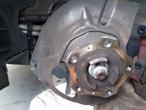 ブレーキキャリパーを外しブレーキローターも取り外します。