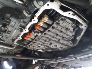 PDKフルードはオイルフィルターも交換の為オイルパン(フィルター内蔵)を取り外し。