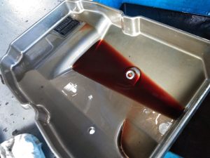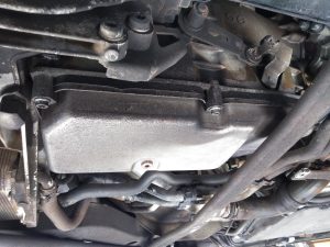 現車両は定期的にオイル交換を行っているので、非常にきれいなオイルパン内部。