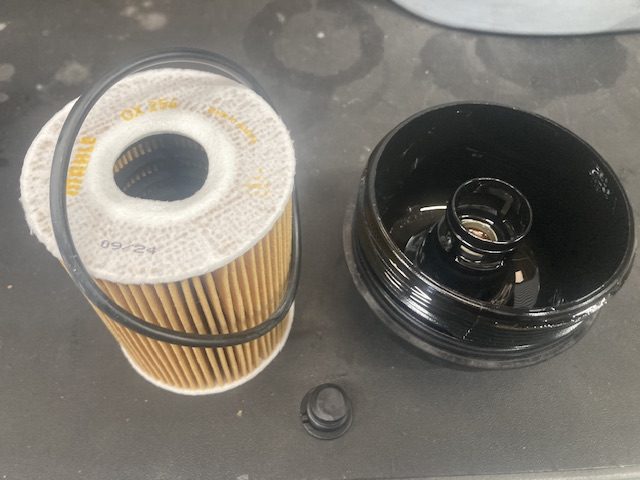 ある程度オイルが抜けきったら上側よりオイルフィルターを交換していきます。