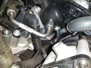 漏れ箇所の特定を行うとエンジン高圧燃料ポンプのサクション側ホースからの漏れを確認しました。