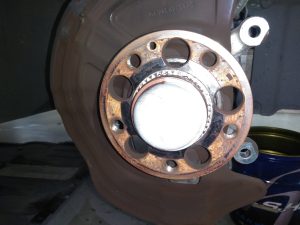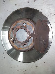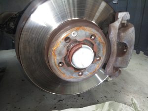 ブレーキディスクローターも摩耗進み段が付いている状態。