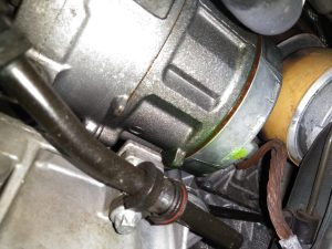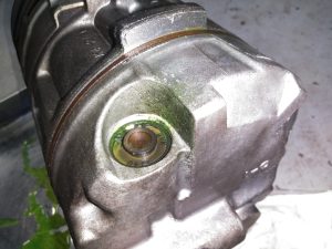 ガス漏れ箇所を特定するとエアコンコンプレッサーからの漏れが確認出来ました。