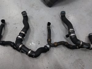 複雑に入り組んだ冷却水パイプやホースを取り外して