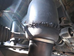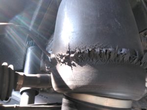 ブレーキ操作しても同じく音が発生します。どうやらパーキングブレーキ部からの音の様子。