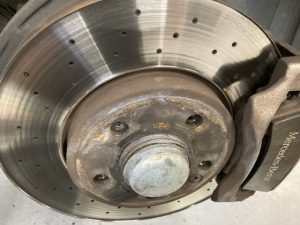 ディスクローターを外すのにキャリパーマウントを外します