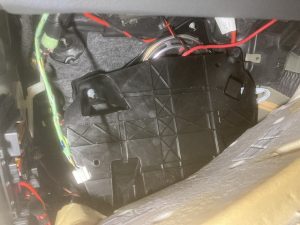サブバッテリーの位置は助手席足元のフロアカーペットの奥です