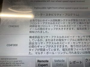 テスターで点検したら右フロントと左リヤのエラーコードが入っていて