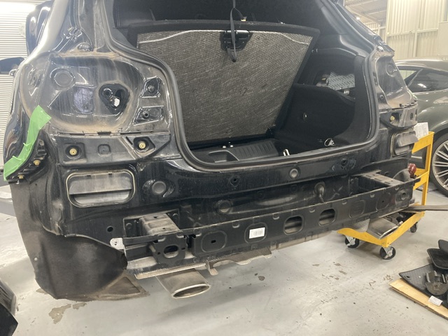 クォーターパネルからリアバンパーにかけて損傷したメルセデスベンツ、Vクラス、W447の修理をしました。