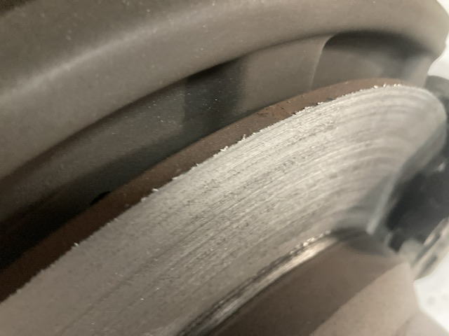 削れた粉が周囲にも付着し、ローター自体かなり薄くなってしまっています。